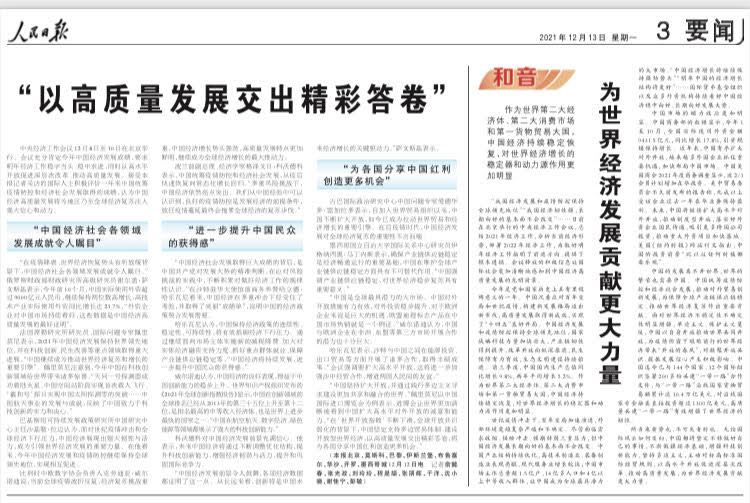 Décembre 2021 : Interview dans la version papier et en ligne du Quotidien du peuple Version en ligne : https://wap.peopleapp.com/article/6398152/6284521 Version papier : Cliquez sur l’image ci-dessous pour avoir le journal en PDF
