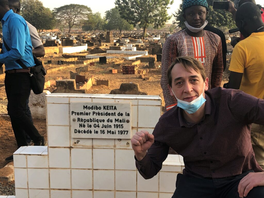 Dès notre arrivée nous avons été invités par l’association Yéréwolo à nous rendre sur la tombe de Modibo Keïta dans le cimetière de Bamako, afin de lui rendre hommage, et expliquer à la presse malienne les raisons de notre venue. Quel honneur pour nous ! Et quel moment émouvant…