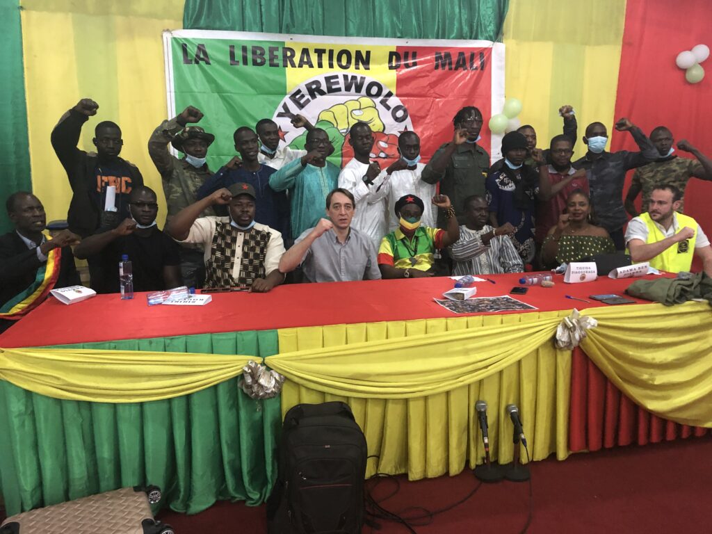Extrait du discours que j’ai ensuite prononcé : « Bonjour à tous, je m’appelle Sébastien Périmony. J’ai fait les premières manifestations des gilets jaunes, et je travaille dans un institut international qui s’appelle l’Institut Schiller, qui a été créé en 1984 à la suite de la mort du mouvement des pays non alignés, qui voulaient à la base la souveraineté des peuples. Malheureusement cela a échoué, mais aujourd’hui je pense qu’on a une chance historique de réunir les peuples du monde contre ce système. Je tenais d’abord à remercier les organisateurs, et en particulier Yéréwolo, pour le combat qu’il mène ici au Mali, le combat du peuple malien, qui rejoint le combat du peuple français. Il faut savoir qu’avec Ty-Chérie, déjà en 2019, nous organisions des manifestations en soutien à l’armée malienne. Et je tiens, au nom de mon pays, à féliciter le courage de l’armée malienne qui fait face à une situation chaotique, qui a été créée malheureusement par mon pays, contre l’intérêt de nos deux peuples. (…) Le peuple français se bat contre son propre gouvernement et en particulier la politique française en Afrique. (…) »